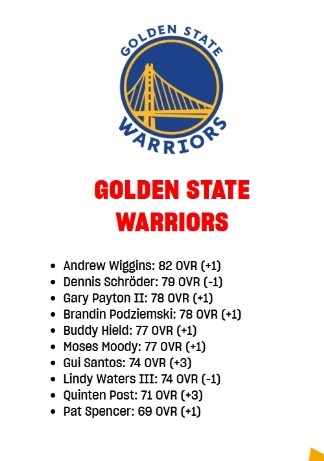 2K勇士球員數(shù)值更新:桑托斯&波斯特各+3 維金斯+1至82